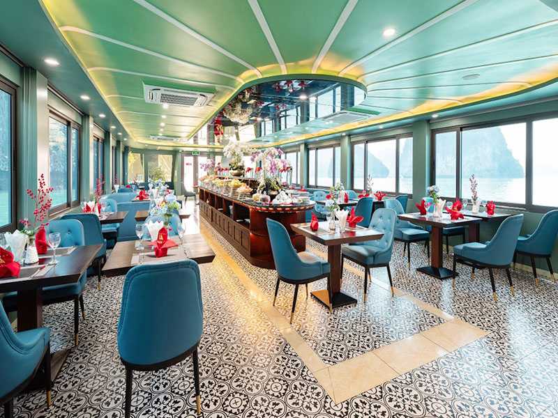 Jewels Of The Bay is a luxurious 4-star cruise offering an unforgettable journey through the stunning Ha Long Bay. Jewels Of The Bay Halong Bay Tour 1 Day - This six-hour tour includes a sumptuous buffet lunch, allowing travelers to savor exquisite cuisine while taking in the bay's natural beauty. Perfect for those seeking both comfort and adventure.Jewels Of The Bay Halong Bay Tour 1 Day